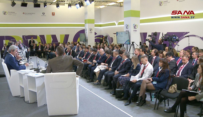 La délégation syrienne participant au forum, présidée par le ministre du Pétrole et des Ressources minérales, Firas Kaddour, s’est informée du programme et du contenu de l’exposition qui définit les activités des principales entreprises russes dans le domaine des études géologiques et des entreprises de transport d’énergie en Russie.