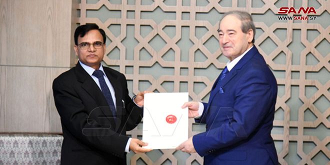 Damas-SANA/Le ministre des Affaires étrangères et des Expatriés, Dr Fayçal Miqdad, a reçu une copie des lettres de créance du Dr Irshad Ahmad en tant qu’ambassadeur plénipotentiaire et extraordinaire de la République de l’Inde en République arabe syrienne.