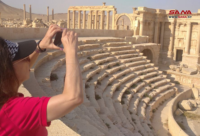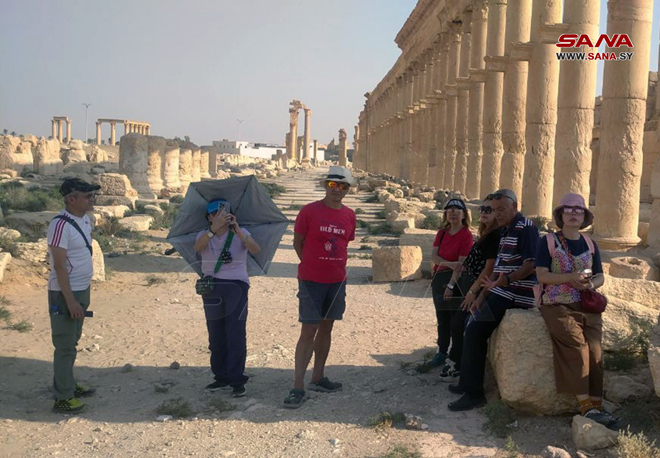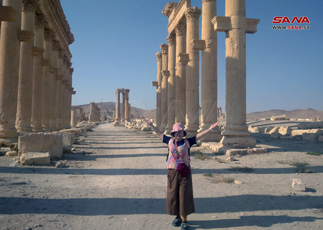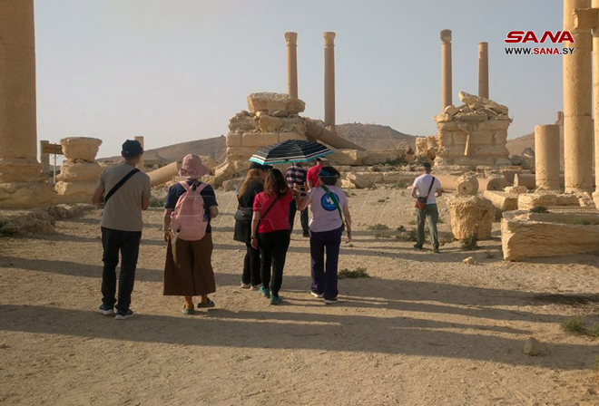 Palmyre-SANA/ Un groupe touristique de la République populaire de Chine a visité la ville historique de Palmyre, et examiné les vestiges archéologiques et culturels qui datent à plus de mille ans, se disant satisfaits de voir ce grand patrimoine culturel.