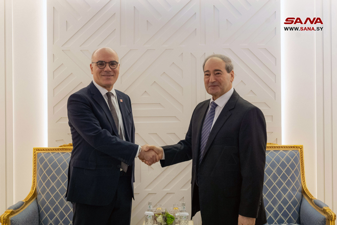 Riyadh-SANA/ Le ministre des Affaires étrangères et des Expatriés, Fayçal Miqdad, a rencontré son homologue tunisien Nabil Ammar en marge de la réunion ministérielle préparatoire au Sommet arabe d’urgence qui a lieu à Riyadh.