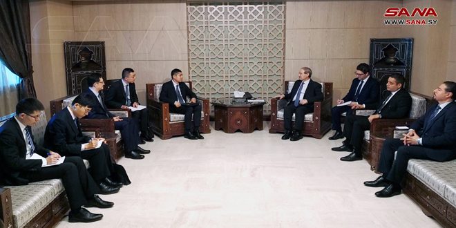 Damas-SANA/ Le ministre des Affaires étrangères et des Expatriés, Dr Fayçal Miqdad, a rencontré aujourd’hui le directeur général du Département de l’Asie de l’ouest et de l’Afrique du Nord du ministère chinois des Affaires étrangères, Wang Di, et la délégation qui l’accompagne.