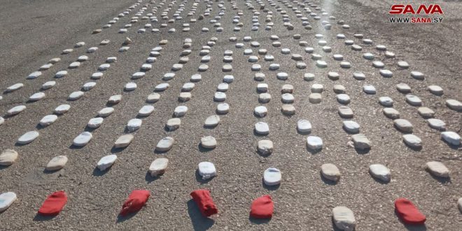Une source de sécurité a déclaré au correspondant de SANA que dans le cadre de la lutte contre les réseaux terroristes et les groupes de trafic de drogue dans le désert syrien, une grande quantité de cannabis et de comprimés de Captagon avaient été saisie.