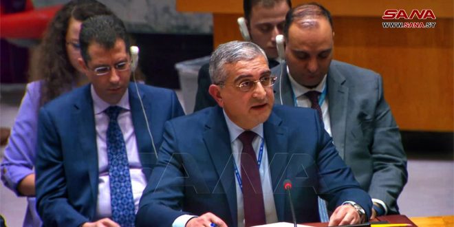 New York-SANA/ L’ambassadeur Qussay al-Dahhak, représentant permanent de la République arabe syrienne auprès des Nations Unies à New York, a affirmé que la Syrie rejette catégoriquement tous les prétextes que les États-Unis tentent d’utiliser pour justifier leur invasion de ses territoires, qui vise à protéger les instruments de Washington dans la région, dont les réseaux terroristes et les milices séparatistes.