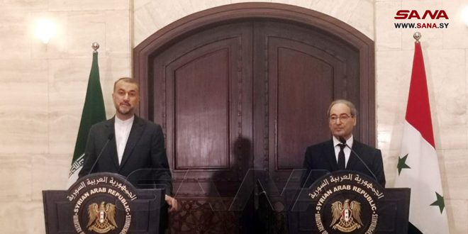 Damas-SANA/ le ministre des Affaires étrangères et des Expatriés, Dr Fayçal Al-Miqdad, a tenu aujourd’hui une conférence de presse avec son homologue iranien, Hossein Amir Abdollahian, à Damas.