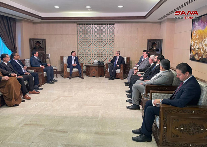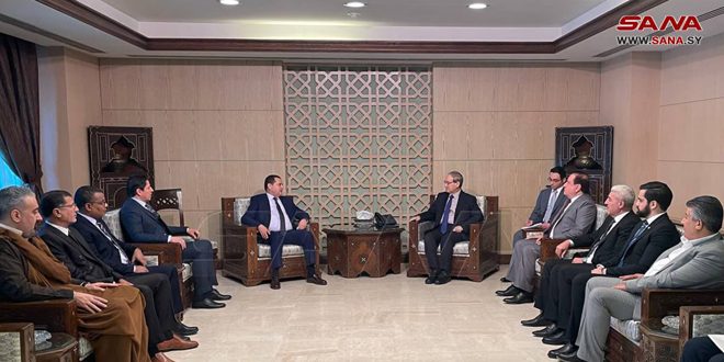 Damas-SANA/ Le ministre des Affaires étrangères et des Expatriés, Dr. Fayçal Miqdad, a reçu aujourd’hui une délégation parlementaire libyenne dirigée par le président de la commission des affaires étrangères auprès de la Chambre des représentants libyenne, Youssef Al-Agouri.
