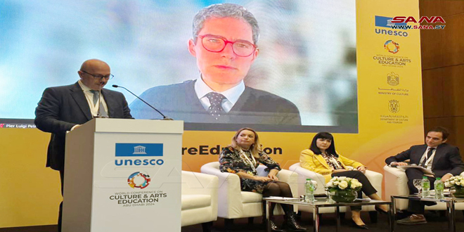 Abu Dhabi-SANA/Syrian Trust for Development/, en coopération avec la Chaire UNESCO de patrimoine culturel immatériel et de droit comparé, Université de Rome Unitima Sapienza – Italie, a organisé en marge de la Conférence mondiale sur la culture et l’éducation artistique organisée récemment par l’UNESCO au Palais national d’Abou Dhabi, Centre d’exposition, une séance de dialogue interactive intitulée ‘’Intégration du patrimoine culturel immatériel dans l’éducation… Nouvelles expériences et nouveaux horizons’ La séance a réuni des experts d’Afrique, d’Amérique latine, d’Asie et d’Europe.