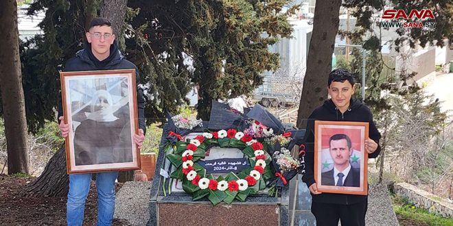 La cérémonie d’hommage a débuté par une minute de silence en signe de respect pour les nobles martyrs, suivie de l’hymne national de la République Arabe Syrienne et de la pose d’une couronne de fleurs sur la tombe de la martyre.