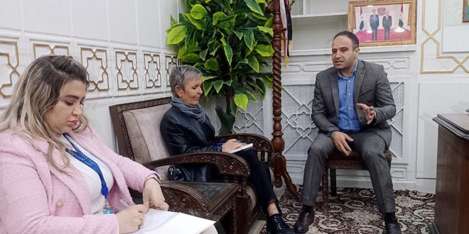 Hassaké-SANA/ Rencontrant l’ambassadrice de Finlande au Liban, et chargée d’affaires en Syrie, Ann Maskanen, et le directeur général adjoint du Programme à l’UNICEF, le gouverneur de Hassaké, Louai Sayyouh a examiné les conditions de vie des habitants de Hassaké en raison des occupations américaine et turque, des violations des droits des habitants, du pillage de leurs terres et les restrictions qui leur sont imposées.