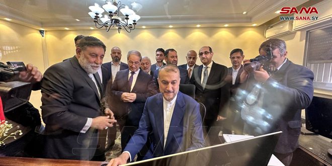 Damas – SANA / Aujourd’hui, le nouveau bâtiment du département consulaire de l’ambassade de la République islamique d’Iran à Damas a été inauguré en présence du ministre des Affaires étrangères et des Expatriés, Fayçal Miqdad, et du ministre des Affaires étrangères iranien, Hossein Amir Abdollahian.
