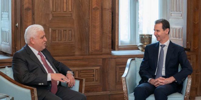Damas-SANA/ Le président Bachar al-Assad a rencontré le président des Forces de mobilisation populaire en Irak, Falih Al-Fayyadh, et a examiné avec lui la consolidation de la coopération entre la Syrie et l’Irak dans les domaines de la lutte contre le terrorisme, et de la coordination efficace pour contrôler les frontières et poursuivre les organisations extrémistes, qui cherchent à cibler la sécurité de la Syrie et de l’Irak.