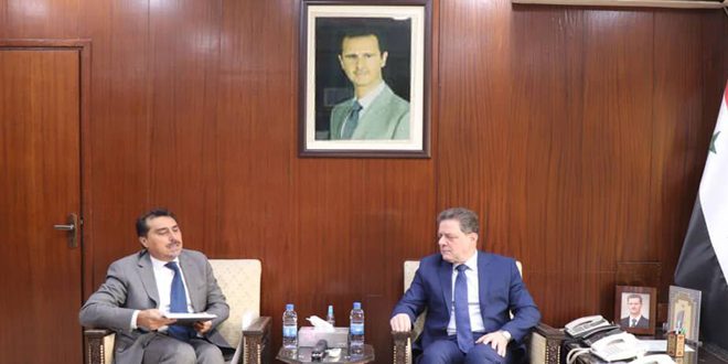 Damas-SANA/Le ministre des Travaux publics et de l’Habitat, Suhail Abdel Latif, a discuté avec le chargé d’affaires de l’ambassade de Chili à Damas, José Patricio Bricley, des perspectives du renforcement et du développement de la coopération entre les deux parties, notamment en matière d’études sismiques.