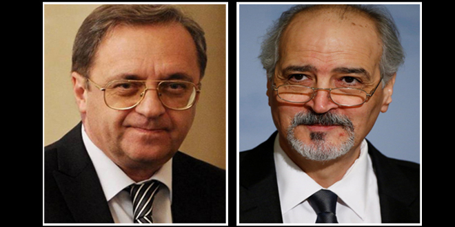 Moscou-SANA / Le Représentant spécial du Président russe pour les affaires du Moyen-Orient et de l’Afrique, vice-Ministre des Affaires étrangères Mikhaïl Bogdanov, a examiné avec l’ambassadeur de Syrie en Fédération de Russie, Bachar Jaafari, les questions urgentes liées à la consolidation de la coopération russo-syrienne.