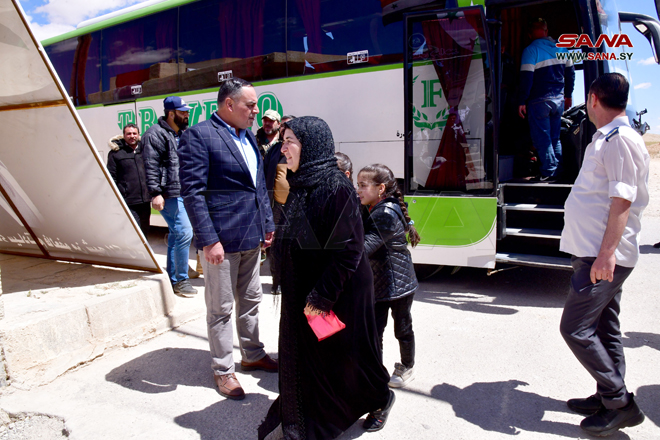 Gouvernorats-SANA / Des dizaines de familles déplacées résidant dans des camps de réfugiés au Liban sont rentrées aujourd’hui via les points de passage d’Al-Zamrani dans la banlieue de Damas et de Jusiyah dans la banlieue de Homs, vers leurs villages et villes sûrs libérés du terrorisme, au milieu de procédures et facilitées accordées par les parties concernées.