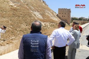 Le directeur des antiquités et des musées d’Alep, Dr. Sakher Oulabi, a déclaré que les travaux de réhabilitation et de restauration de l’entrée principale de la Citadelle d’Alep comprenaient la façade, les plafonds et les endroits qui constituaient une menace pour la sécurité publique après avoir été endommagés par le tremblement de terre, soulignant que la première phase de restauration a été achevée avec l’expertise nationale, et que les travaux sont toujours en cours pour mettre en œuvre de nouveaux projets.