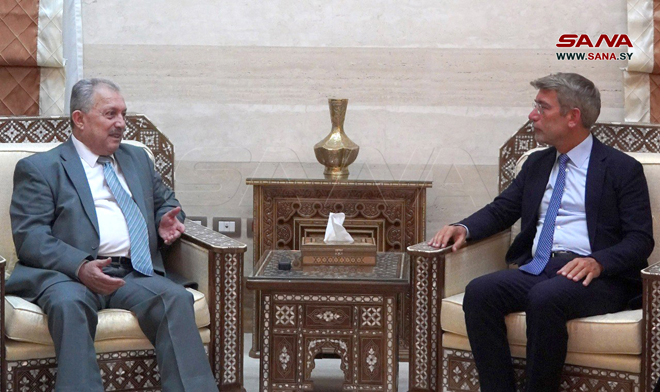 Damas-SANA/ Le président du conseil des ministres, Hussein Arnous, a examiné avec le ministre de l’énergie et des ressources hydrauliques, Walid Fayyad, les moyens de consolider la coopération bilatérale dans le domaine de l’eau et de la sécurité hydrique dans le contexte des changements climatiques et de leur impact négatif sur les différents secteurs économiques, en particulier l’agriculture.