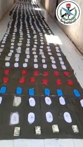 Dans le même contexte, le communiqué ajoute : « Après surveillance et suivi, une unité des forces des gardes-frontières a pu confisquer de grandes quantités de stupéfiants et arrêter deux trafiquants qui tentaient de faire passer des stupéfiants vers la frontière syro-jordanienne ».