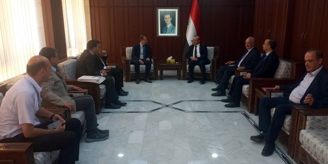Damas-SANA/ Le ministre des Ressources en eau, l’ingénieur Hussein Makhlouf, a discuté avec la délégation de l’ambassade de la République tchèque à Damas de la coopération technique existante entre les deux parties, notamment dans le domaine des stations d’épuration des eaux, et de l’impact positif des stations qui ont été déjà construites pour assurer d’eau potable aux citoyens, comme la station d’Aqraba.