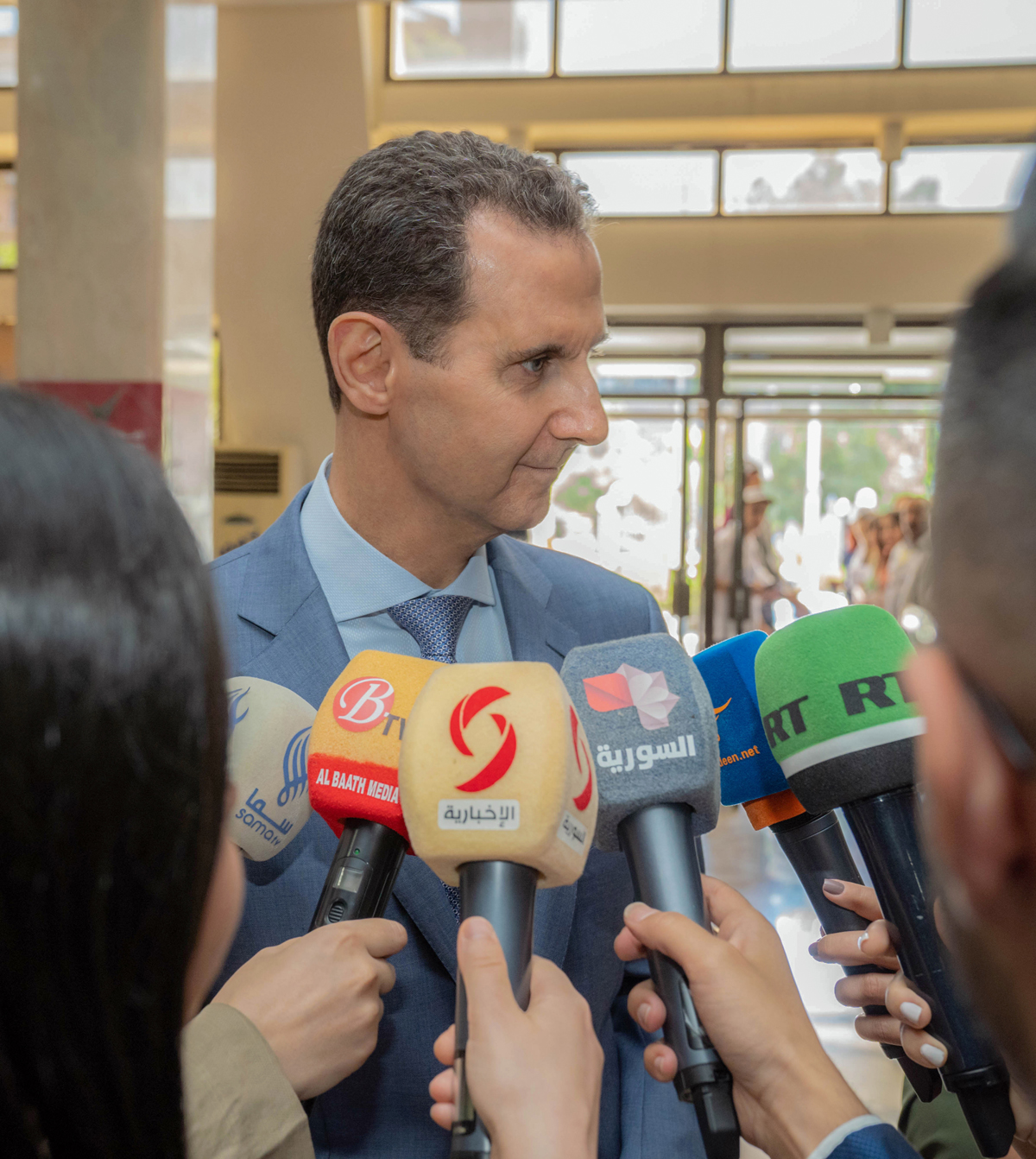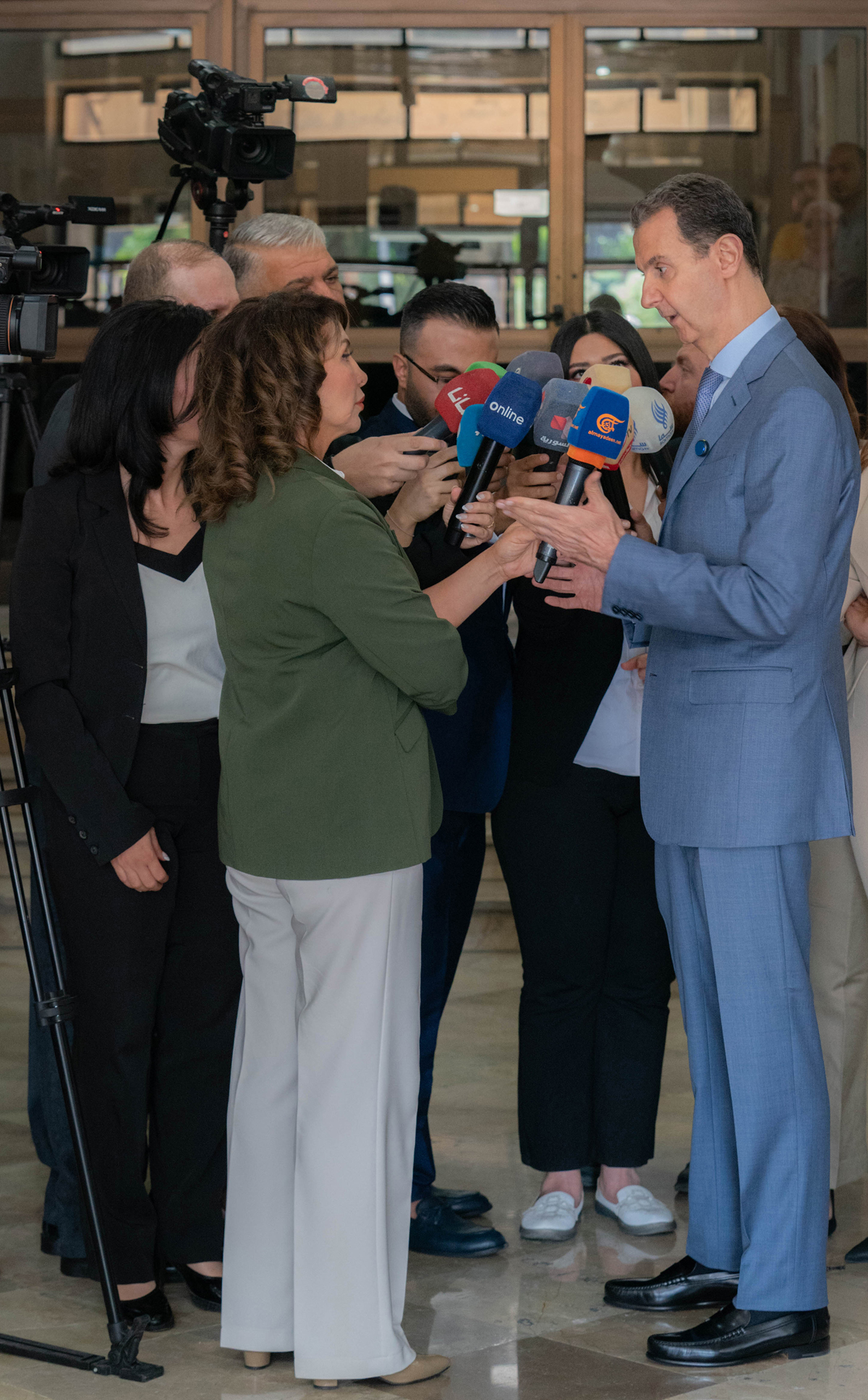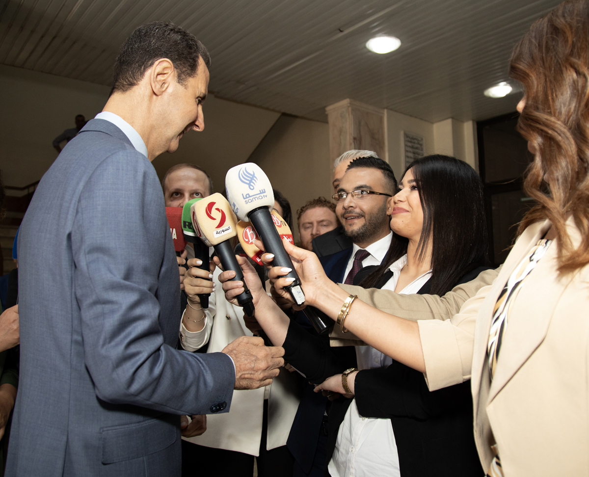 Dans ses déclarations lors de son vote aux élections des membres de l’Assemblée du peuple aujourd’hui, en réponse aux questions des journalistes sur les élections législatives en cours et les développements politiques actuels, le Président al-Assad a déclaré : “Nous sommes positifs vis-à-vis de toute initiative visant à améliorer les relations avec la Turquie, et c’est la chose normale, et personne ne pense à créer des problèmes avec ses voisins, mais cela ne signifie pas que nous allions rencontrer le Président turc Recep Tayyip Erdogan sans règles”.