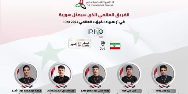 Damas-SANA / Les élèves de l’Olympiade scientifique syrienne participent à l’Olympiade mondiale de physique 2024, qui aura lieu à l’Iran du 21 au 29 de ce mois de juillet.