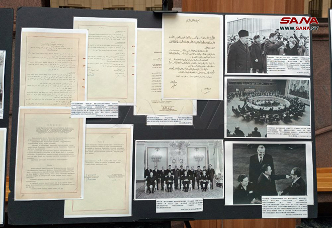 Moscou-SANA/ À l’occasion du 80ᵉ anniversaire de l’établissement des relations syro-russes, une exposition de photos, de documents d’archives et de documents des archives du ministère a été inaugurée aujourd’hui au siège du ministère russe des Affaires étrangères à Moscou, sur les étapes du développement des relations de coopération bilatérale, depuis le premier télégramme établissant les relations diplomatiques jusqu’aux photos prises lors des récentes réunions bilatérales entre la Syrie et la Russie.