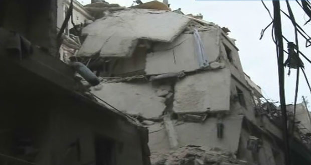 11/04/2015 D.H./ M.Ch. Attaques terroristes aux roquettes lancées contre les deux quartiers de Souleimanyah et Sayyed Ali dans la ville d'Alep 2015-04-11 dima Share tweet
