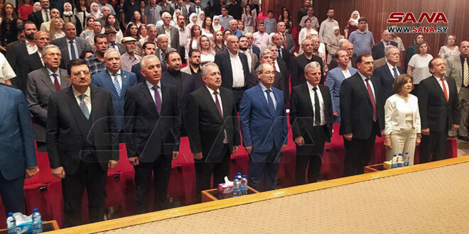 Damas-SANA/ En présence du président du Conseil des ministres, Hussein Arnous, et d’un certain nombre de ministres, l’Union des journalistes a organisé aujourd’hui une cérémonie centrale à l’occasion du cinquantième anniversaire de sa fondation, à la Bibliothèque Al-Assad à Damas, où elle a honoré un groupe de journalistes.