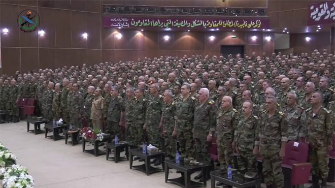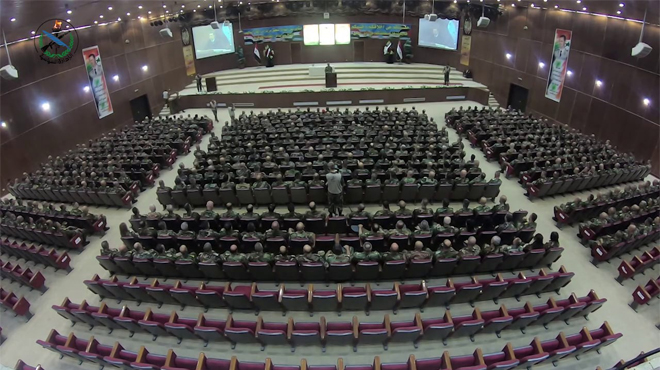 Le général Abbas, représentant le parrain de l’événement, a prononcé un discours dans lequel il a transmis les salutations du président Bachar al-Assad aux officiers diplômés, exprimant ses espoirs pour leur succès et leur accomplissement dans les missions qui les attendent dans diverses fonctions aux côtés de leurs camarades de l’armée et des forces armées. Il a souligné la nécessité de poursuivre le succès et l’avancement, dans le but de développer davantage nos forces armées au bénéfice de notre patrie, de son honneur et de sa prospérité.