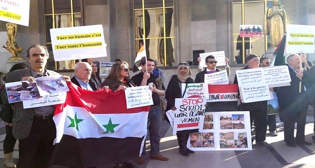 Paris /Les communautés, syrienne et arabes, en France ont observé hier à Paris un sit-in pour dénoncer l’offensive et le terrorisme qui visent certains pays arabes, tels que la Syrie, le Yémen, l’Irak, le Liban, la Libye et la Tunisie.