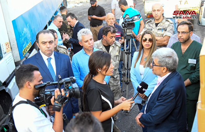 Damas-SANA/En exécution des directives du président Bachar al-Assad de se tenir aux côtés du peuple libanais frère et en réponse à la situation humanitaire résultant des répercussions de l’agression israélienne continue contre le Liban, le ministère de la Santé a envoyé aujourd’hui un convoi d’aide médicale, destiné au ministère libanais de la Santé, via le poste frontière de Jdeidet Yabous, à la frontière syro-libanaise.