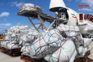 Lattaquié – SANA / Un avion chargé d’aides humanitaires iraniennes destinées aux citoyens libanais qui se sont déplacés en Syrie à la suite de l’agression israélienne est arrivé aujourd’hui à l’aéroport international de Lattaquié, avec à son bord de la nourriture et du matériel de secours, dont des tentes, des couvertures, des articles d’hygiène personnelle et d’autres besoins fondamentaux des familles.