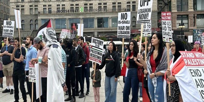 Washington – SANA / Des centaines de militants ont exigé lors d’une manifestation qui a parcouru les rues de Chicago, dans l’État d’Illinois, aux États-Unis, de cesser le soutien continu des États-Unis à l’entité israélienne et d’imposer immédiatement un embargo sur les armes qui lui sont envoyées pour mettre fin à l’agression contre la bande de Gaza.