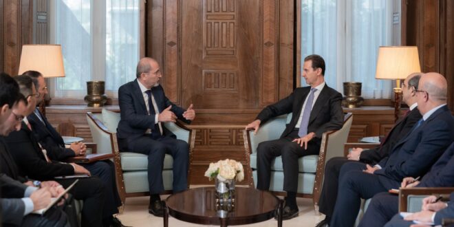 Le président Bachar al-Assad rencontre le ministre jordanien des Affaires étrangères Ayman Safadi et discute avec lui des relations bilatérales entre les deux pays et des moyens de les renforcer, ainsi que de la question du retour des réfugiés syriens. Le président al-Assad a discuté avec le ministre Safadi des développements actuels et dangereux dans la région.
