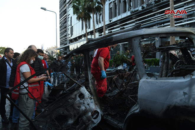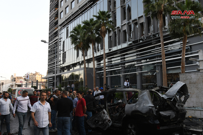 Damas-SANA / Deux civils sont tombés en martyr dans une agression israélienne contre une voiture dans le quartier de Mazzeh à Damas.