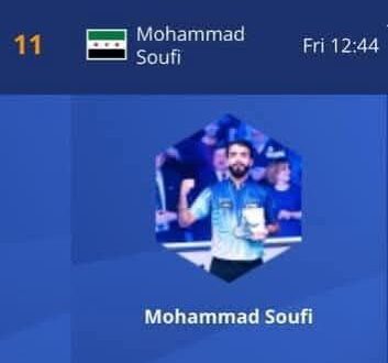 Al-Soufi, qui vit en Europe, est le joueur de billard le plus important de Syrie. Il est devenu 2e au Championnat du monde 2023 en Pologne et remporté le titre de champion d’Europe à 9 balles, organisé en Estonie le début de 2023.