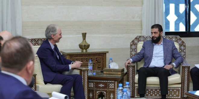 Damas – SANA / Lors d’une réunion, le chef de la nouvelle administration, Ahmad Al-Charaa, a examiné avec l’envoyé spéciale de l’ONU pour la Syrie, Geir Pedersen, la nécessité de reconsidérer la résolution 2254 compte tenu des changements survenus sur la scène politique.