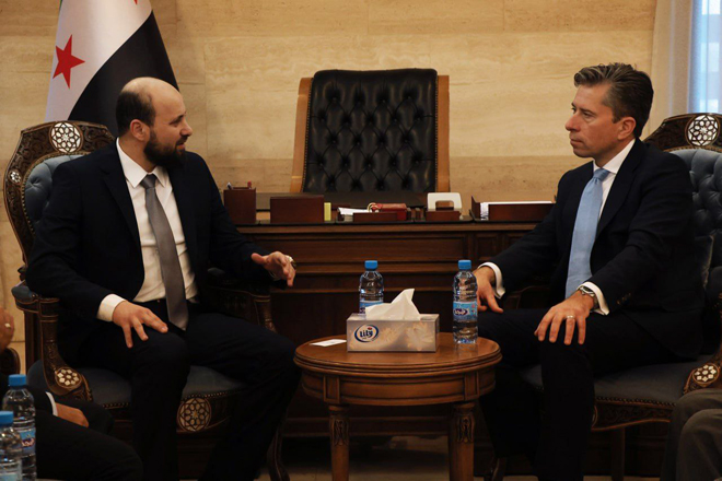 Damas-SANA/ Le chef du gouvernement syrien trasitoire Mohammad al-Bashir a rencontré le Secrétaire général adjoint aux affaires humanitaires, Tom Fletcher.