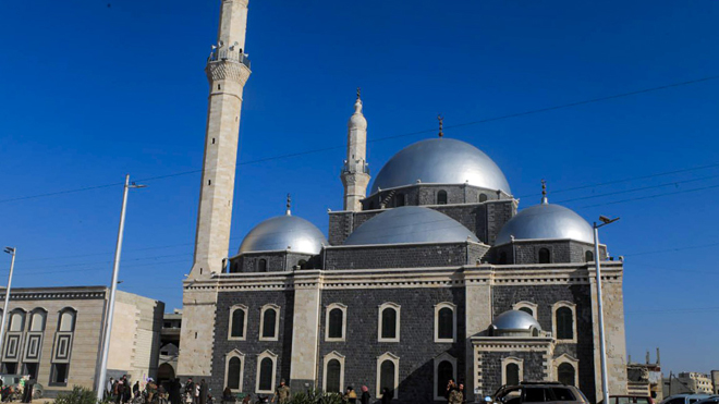 Images de la mosquée de Khalid Ibn Al-Walid, à Homs, après la chute du régime criminel