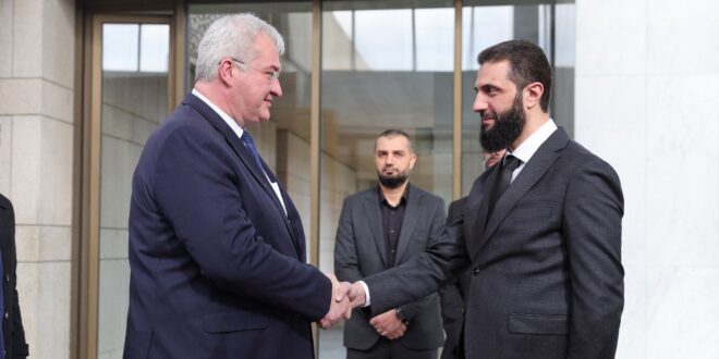 Damas-SANA / Le commandant de la nouvelle administration syrienne, Ahmad Al-Charaa, le ministre syrien des Affaires étrangères, Assaad Al-Chaibani, et le chef des services de renseignement syriens, Anas Khattab, ont rencontré aujourd’hui la délégation officielle ukrainienne présidée par le ministre ukrainien des Affaires étrangères, Andriy Sybiha.