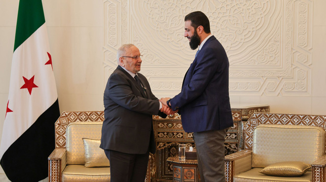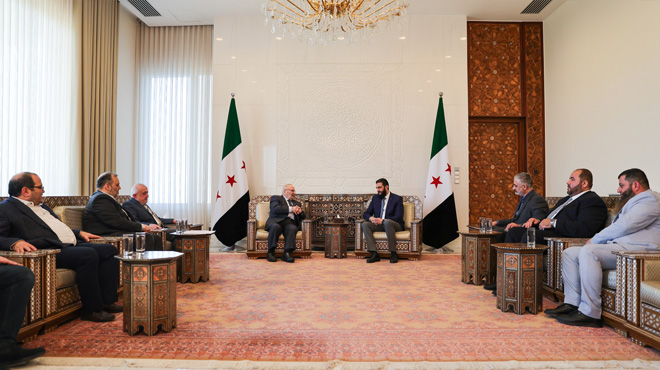 Damas-SANA / Le président Ahmad Al-Charaa a reçu aujourd’hui au Palais du Peuple à Damas …