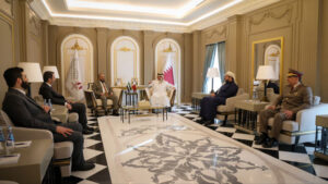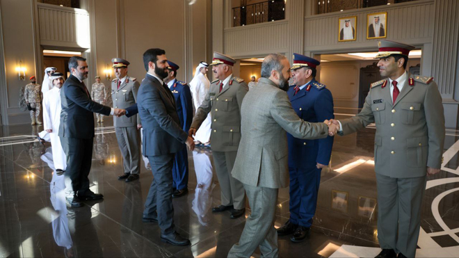 Doha-SANA / Le ministre de la Défense, le général Murhaf Abu Qasra, a rencontré, dans la capitale qatarie, Doha, le ministre qatari de la Défense, en présence du ministre des Affaires étrangères, Assaad Al-Chaibani, et du chef du service de renseignements, Anas Khattab.