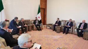 Damas-SANA/Le dirigeant de la nouvelle administration Syrienne, Ahmed Al-Charaa, et le ministre des affaires étrangères ,Assaad Al-Chaibani ,ont rencontré une délégation de la république italienne dirigée par le Ministre des affaires Étrangères, Antonio Tajani.
