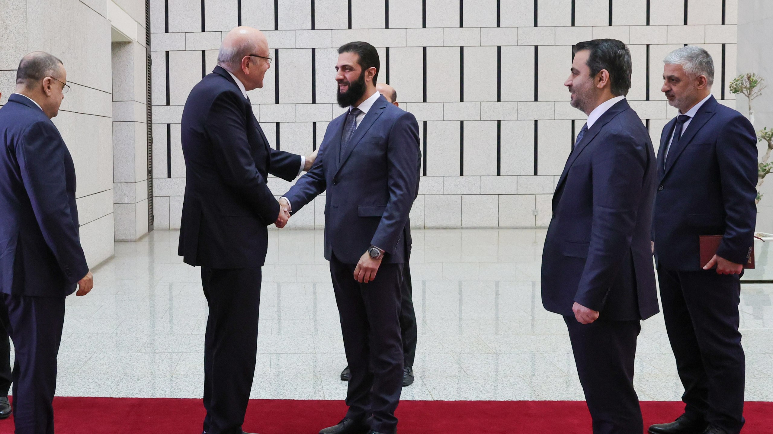 Damas-SANA/ Le dirigeant de la nouvelle administration Syrienne, Ahmed Al-Charaa, et le ministre des affaires étrangères, Assaad Al-Chaïbani, ont reçu une délégation libanaise à haut niveau, présidée par Najib Mikati, Premier ministre du Liban, et ce, au Palais du peuple.