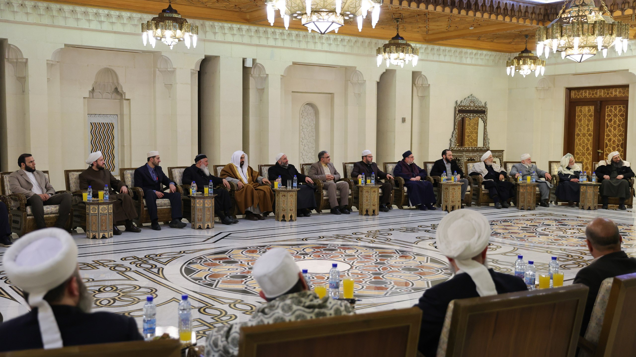 Alep-SANA / Les cheikhs et les oulémas de la ville d’Alep ont félicité le leader Ahmad Al-Charaa à l’occasion de la victoire de la révolution syrienne.