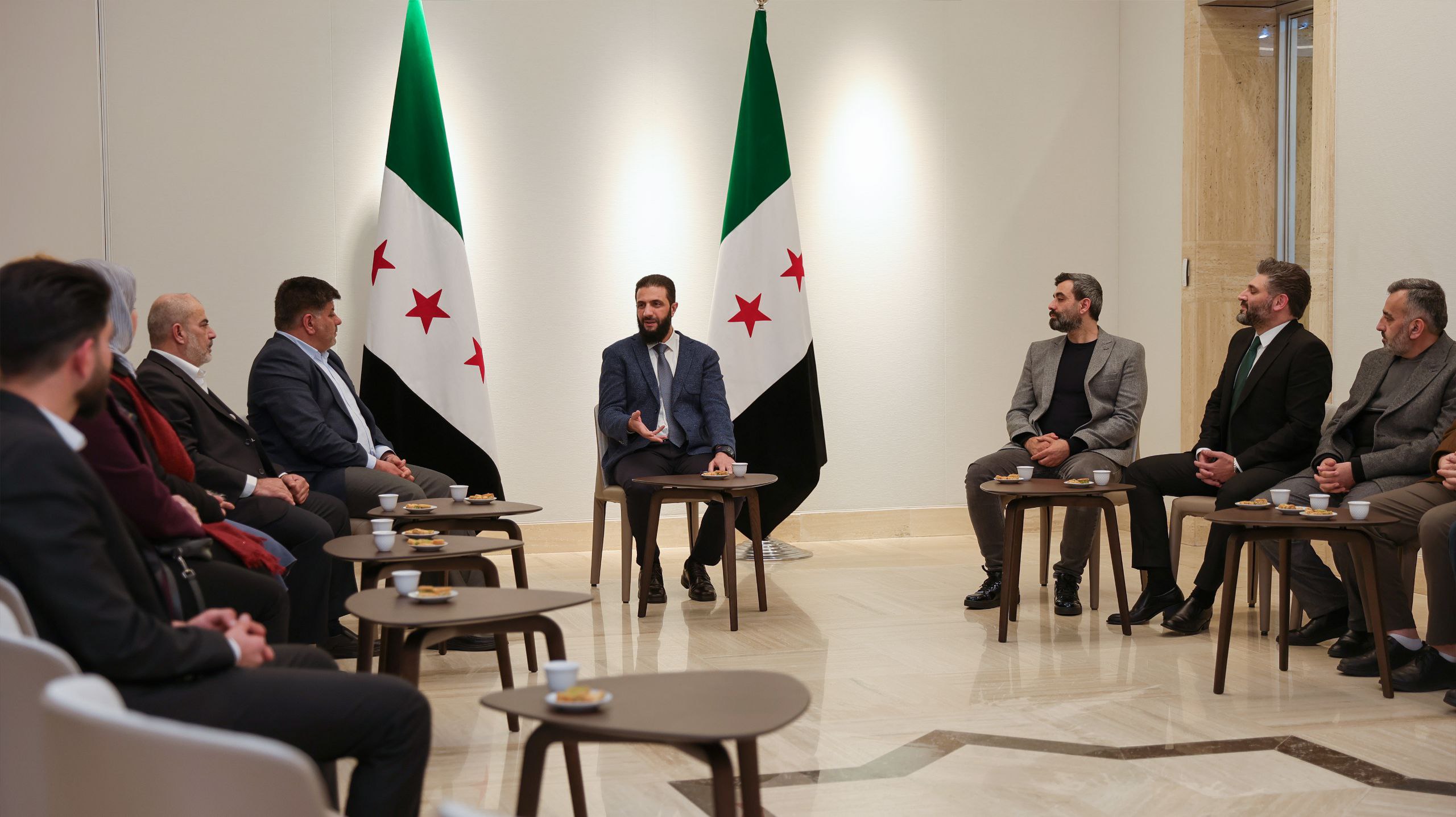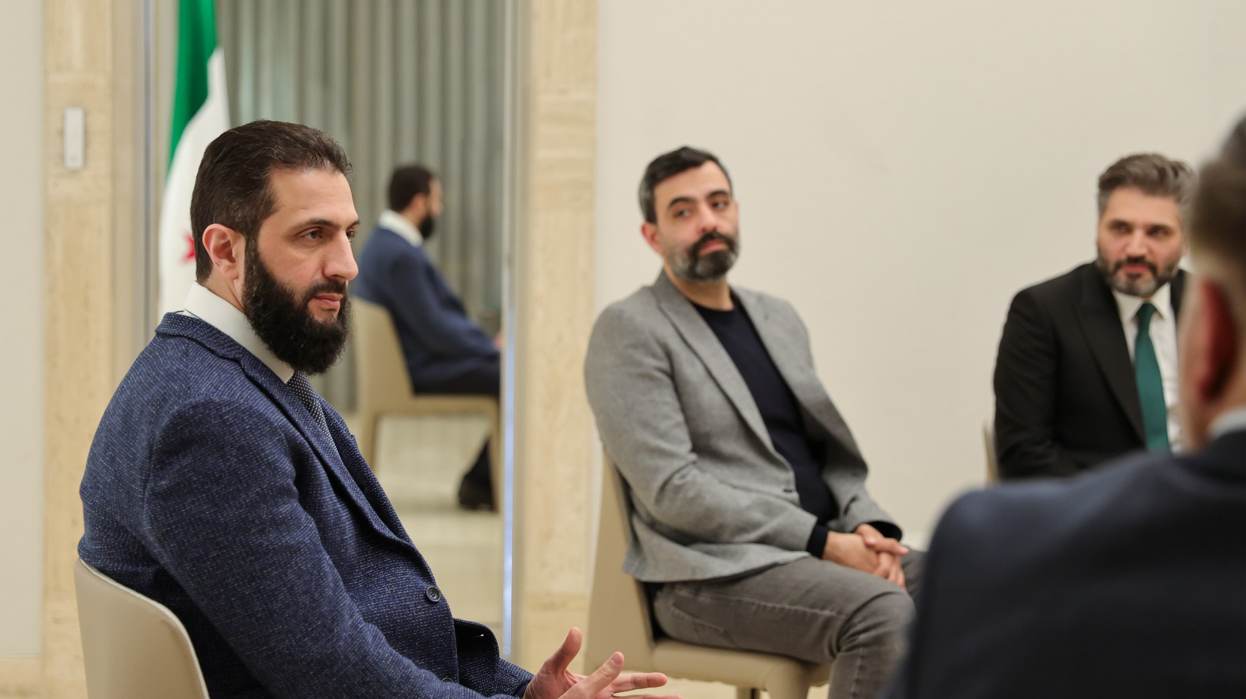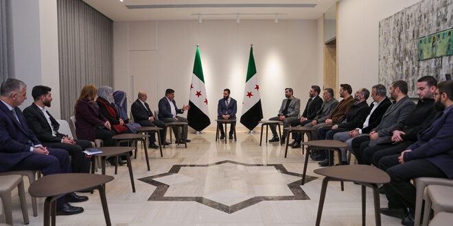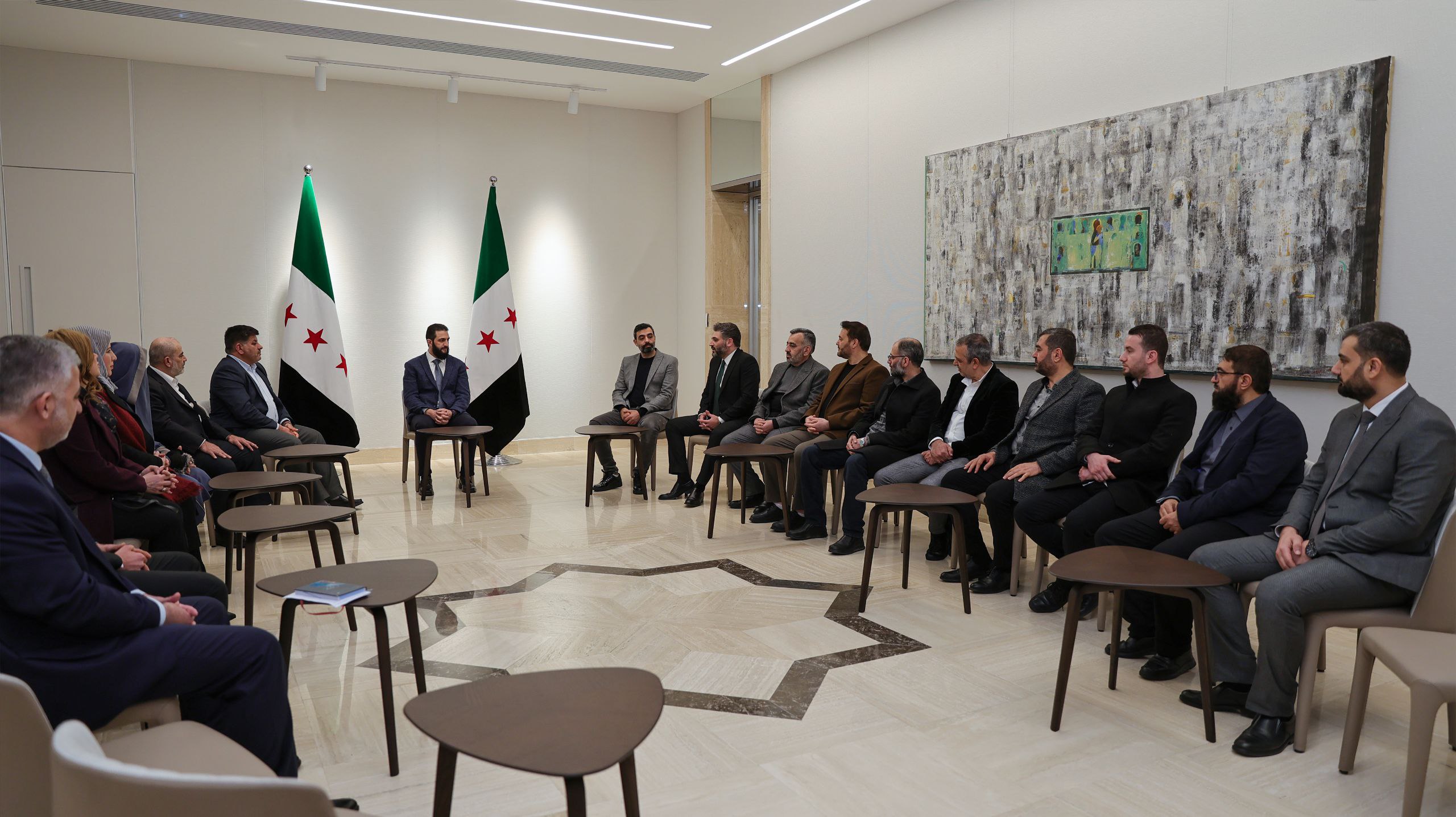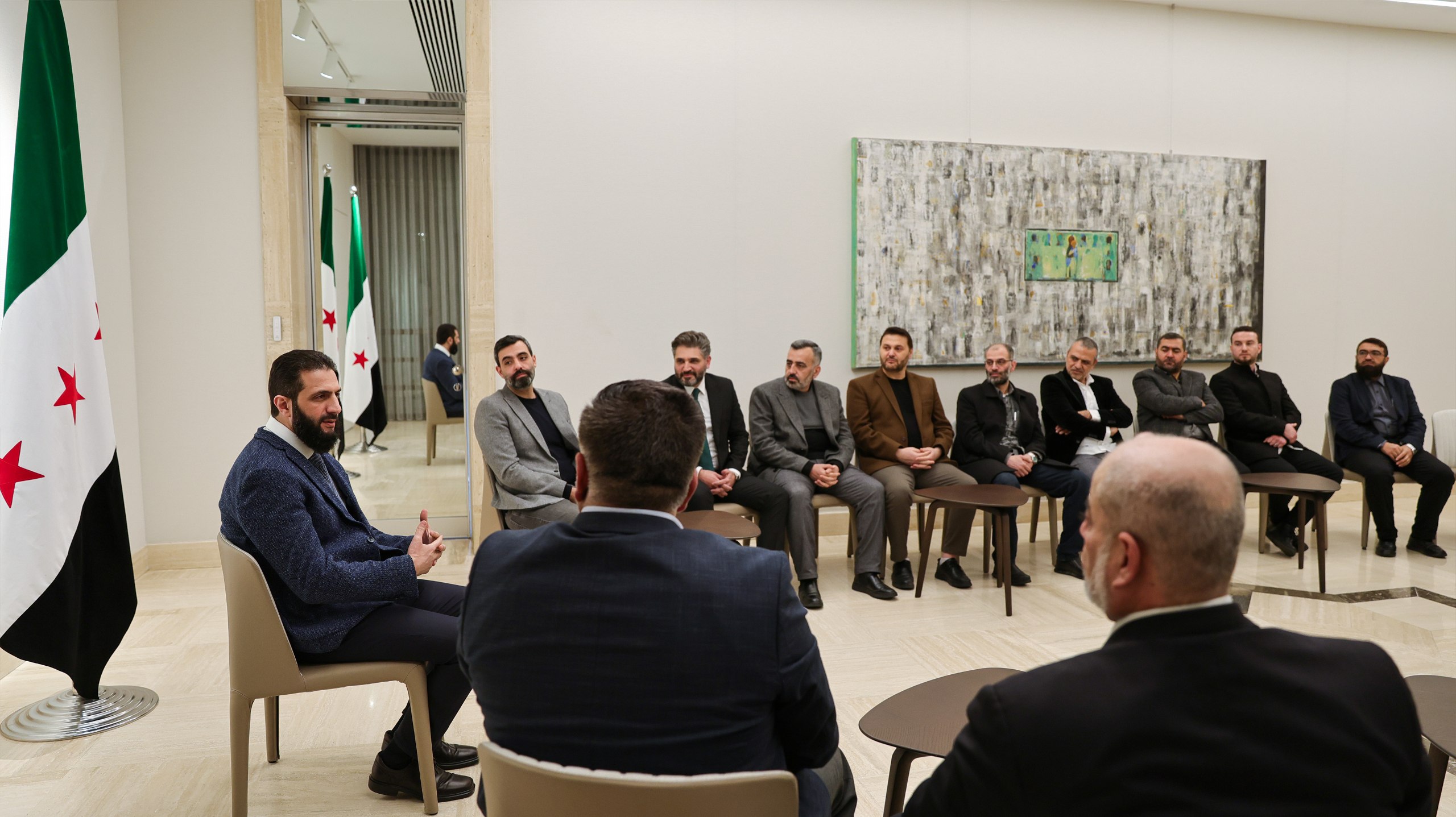 16/01/2025 Damas-SANA / Le leader de la nouvelle administration syrienne, Ahmad Al-Charaa, rencontre une délégation d’écrivains et de poètes syriens à Damas. R.Fawaz 2025-01-16 Rim Fawaz Share tweet