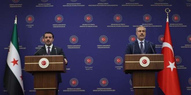 Ankara-SANA/ « Le peuple syrien a prouvé qu’il est contre l’injustice et la tyrannie, et nous soulignons la nécessité de construire une patrie qui garantisse les droits du peuple et rétablisse le rôle international efficace et positif de la Syrie, loin des politiques de l’ancien régime qui a fait de la Syrie l’otage des projets coloniaux », a déclaré le ministre des Affaires étrangères, Assaad al-Chaibani, lors d’une conférence de presse avec son homologue turc Hakan Fidan à l’issue de leur rencontre à Ankara.