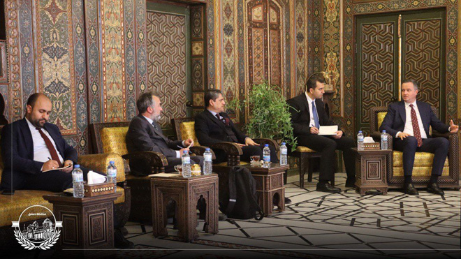 Damas-SANA/ Le gouverneur de Damas, Maher Marwan, a discuté avec le président de l’agence turque de coopération et de développement “Tika”, Serkan Kayalar, les perspectives de coopération pour préserver les monuments de la ville de Damas, comme un héritage humain commun qui reflète la profondeur de liens historiques et culturels entre la Syrie et la Turquie.