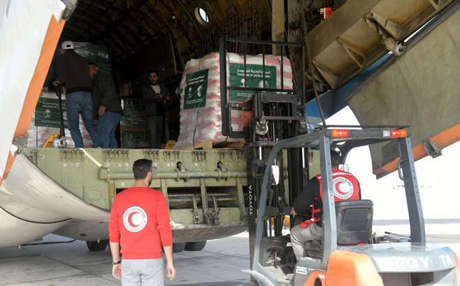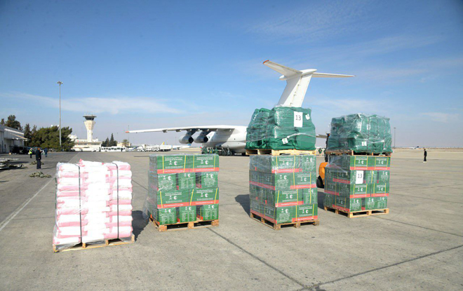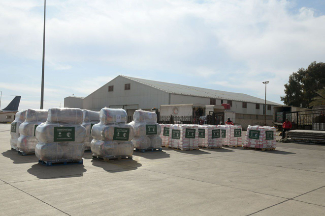Dans une déclaration à SANA, le chef de l’équipe du Centre d’aide humanitaire et de secours Roi Salman, Moubarak bin Said Al-Dosari, a indiqué que l’avion comprend environ 30 tonnes de nourriture et d’abris, de fournitures d’hiver et de sacs de soin personnels, et c’est le 13ème avion du pont aérien lancé par le centre.