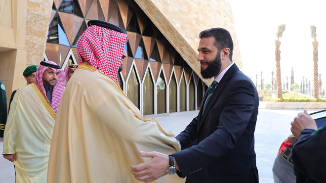 Riyad-SANA/ Le prince héritier saoudien Mohammed ben Salmane a reçu le président de la République arabe syrienne Ahmad Al-Charaa et la délégation qui l’accompagnait à son arrivée au palais Al-Yamamah dans la capitale saoudienne, Riyad.