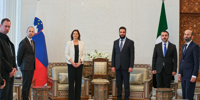 Damas-Sana/Le président de la République, Ahmad Al -Charaa, et le ministre des Affaires étrangères, Asaad Al-Chaibani, ont reçu au Palais du Peuple une délégation de haut niveau de la République slovène, conduite par la Vice-Première ministre, ministre des Affaires étrangères de la Slovénie, Mme Tanja Fajon.