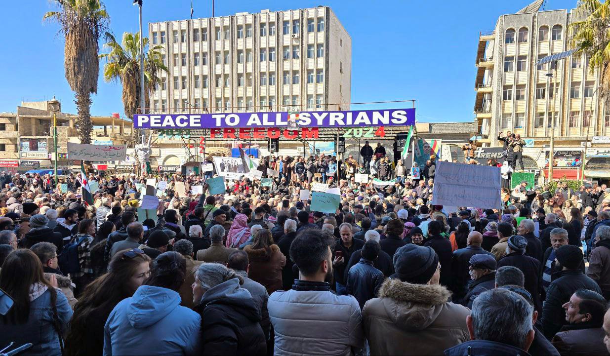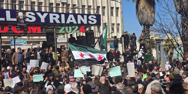 Souaidaa – SANA / La place de Karama (dignité) au centre de Souaidaa a assisté à une manifestation imposante, à laquelle ont participé des personnalités syndicales, professionnelles et civiles, en signe de protestation et de condamnation des récentes déclarations israéliennes et de rejet de l’intervention dans les affaires intérieures de la Syrie.